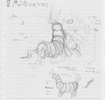 図鑑ナンバーが分かってなかったり(左上)、謎の文が入ってたり(上部)、「&」のカッコイイ書き方を考えてたり(下部)、ペンドラーの目の描き方を研究してたり(中央やや右上寄り)、